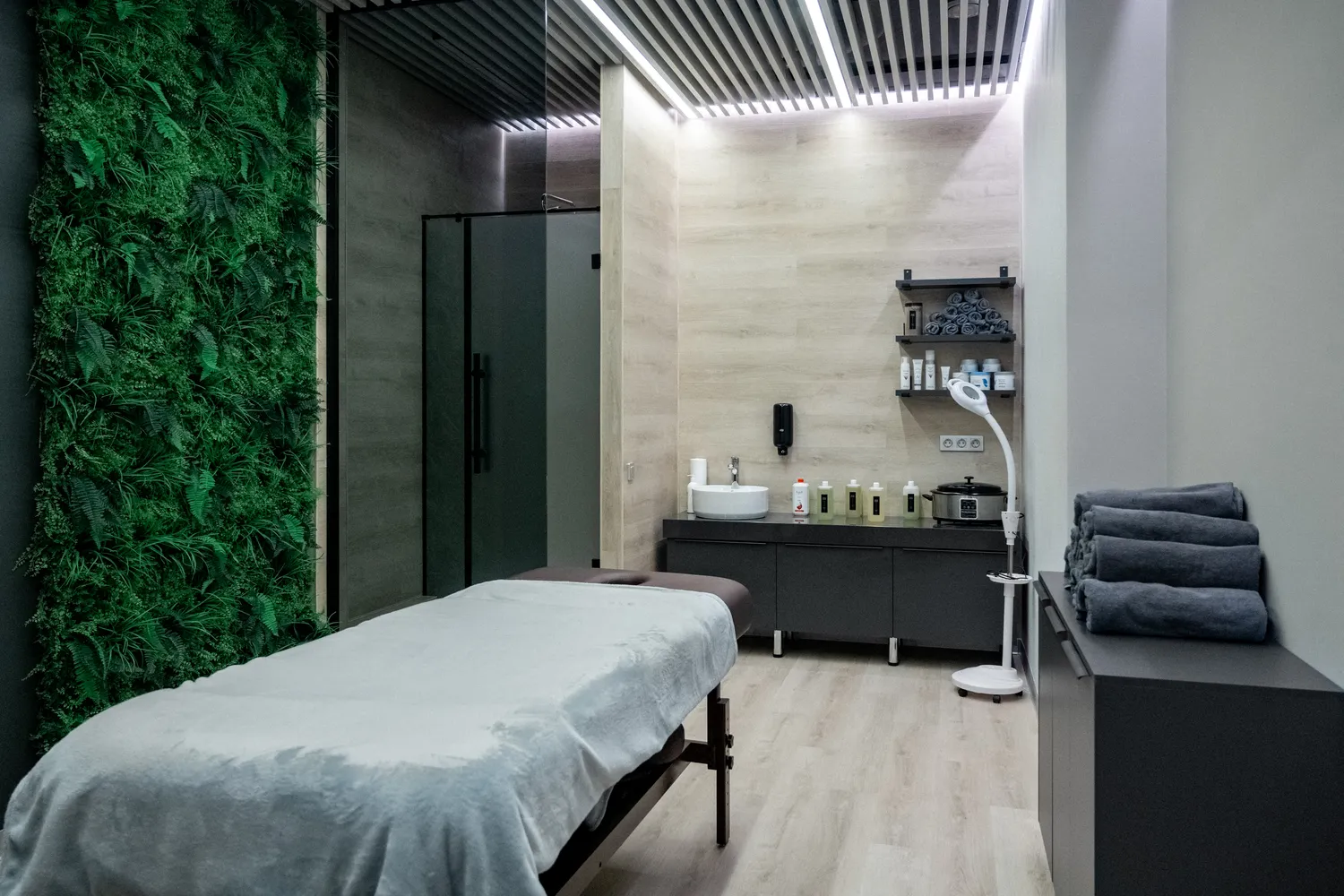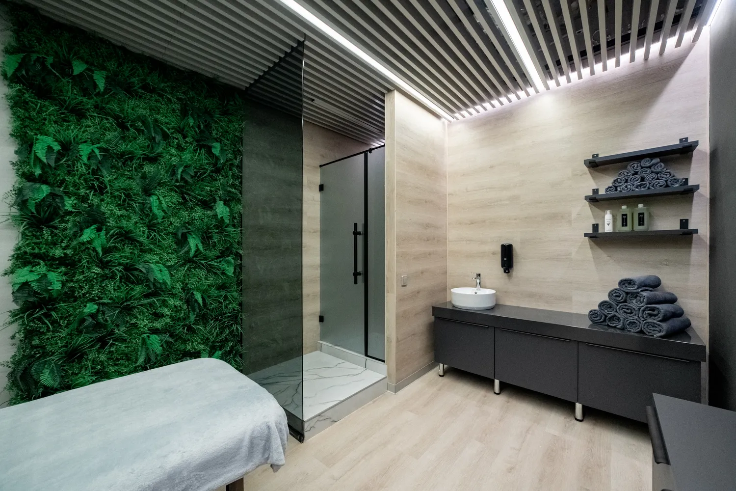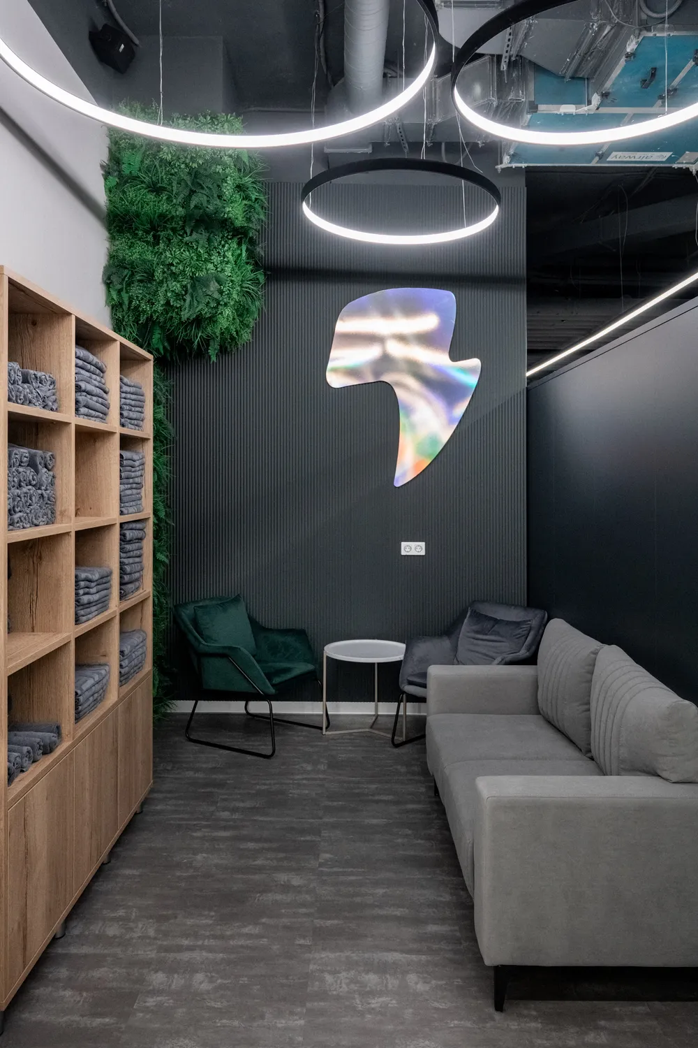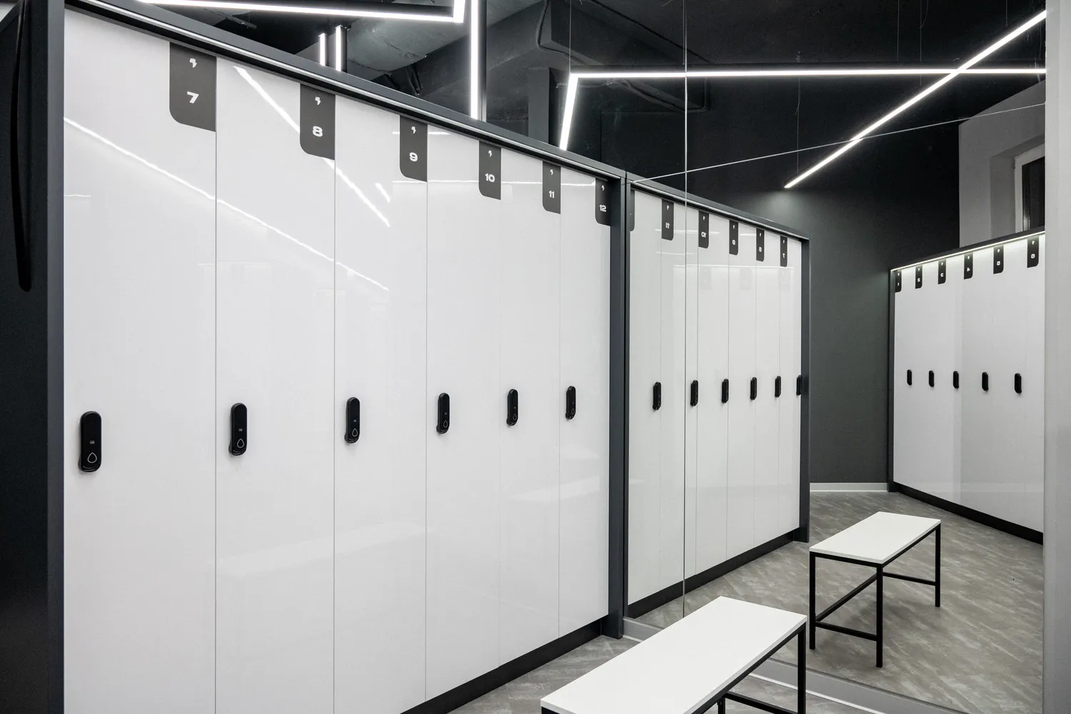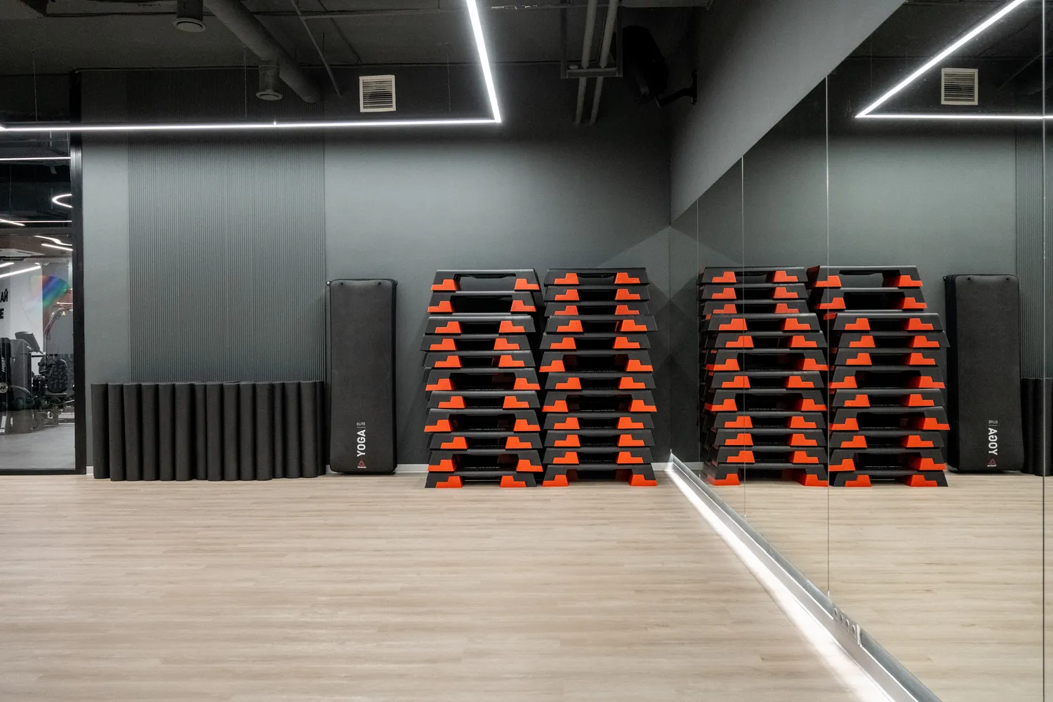 3. Управление освещением: предусмотрели возможность управления освещением в таких помещениях как: SPA-зоны, зал групповых программ, раздевалки. Для этого использовали светорегуляторы и панели управления, чтобы адаптировать уровень освещённости под разные ситуации и время суток. В частности  в  зале групповых программ фитнес-центра диммируемые светильники общий метраж, которых составляет 90 метров, позволяют синхронно регулировать яркость, создают уникальную атмосферу и обеспечивают комфортное освещение для различных видов тренировок.